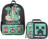Set školní batoh Minecraft se svačinovým boxem: Create (objem 12 litrů|29 x 41 x 10 cm) černý - zelený polyester