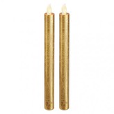 LED svíčky, 25cm, metalické zlaté, 2× AAA, jantarová, 2 ks