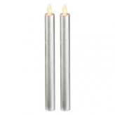 LED svíčky, 25cm, metalické stříbrné, 2× AAA, jantarová,2 ks