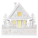 LED vánoční domek dřevěný, 28 cm, 2x AA, vnitřní, teplá bílá, časovač