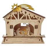 LED vánoční betlém dřevěný, 16,5 cm, 2x AAA, vnitřní, teplá bílá, časovač