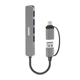PORT CONNECT USB HUB, 4× USB 3.0, USB-A/USB-C vstup, stříbrná