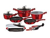 Sada nádobí Berlingerhaus s mramorovým povrchem 12+2 ks Metallic Line Burgundy Edition BH-1695
