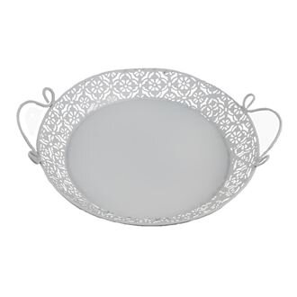 Dekorační kovový podnos.Rozměry : průměr 30,5 cm, výška 4 cm.Barva : bílá.Materiál : kov. prečítať celé