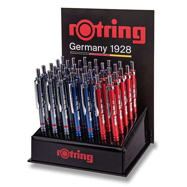 Stojánek 35 ks mechanické tužky Tikky Retro s plastovým tělem a kovovými doplňky ve stříbrné barvě. Dolní část s jemným vroubkováním pro lepší úchop. Skrytá pryž umístěná v stiskací koncovce mechanické tužky. Ve 3 barevných provedeních. prečítať celé