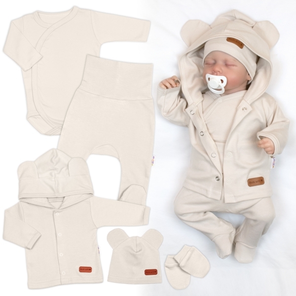 Bavlněná souprava pro miminko do porodnice 5D, Made with love, ecru; 50 (0-1m)