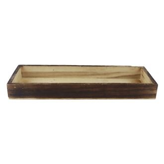 Podnos je vyrobený z materiálu na báze dreva, čo mu dodáva príjemný teplý odtieň a prirodzený vzhľad. Jeho rozmery 28 × 10 cm a výška 3 cm ho robia kompaktným a ľahko umiestniteľným na stôl, komodu či iné miesta, kde chcete vytvoriť útulnú atmosféru.