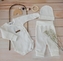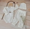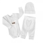 Žebrované zavinovací body, tepláčky a čepička Kazum 3D bavlněná sada, bílé, vel. 62; 62 (2-3m)