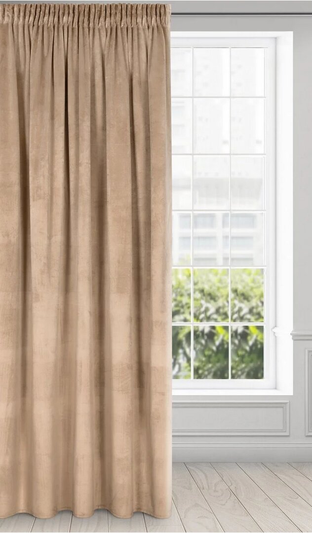 Dekorační závěs "VELVET" vyrobený ve vysoké kvalitě v moderních barvách do ložnice nebo obývacího pokoje v rozměru 140x270 cm s řasící páskou na zavěšení na žabky, háčky, tyčovou gárnyž. 1 kus v balení. 200 gr/m2. Závěs má ozdobné řasení. Rozměr : 1x 140x270 cm - šířka 140 cm, výška 270 cm