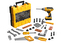 Nářadí v kufříku. Rozměry kufříku 26x9x25,5 cm. Světelné efekty. 3xAAA do vrtačky nejsou součástí. Přepínač ON/OFF na vrtačce. Součástí kufřík, vrtačka s náhradními šroubováky, kladivo, kombinačky, pilka, šroubovák, 2 klíče, pravítko, dřívka, šrouby, matice a další. prečítať celé