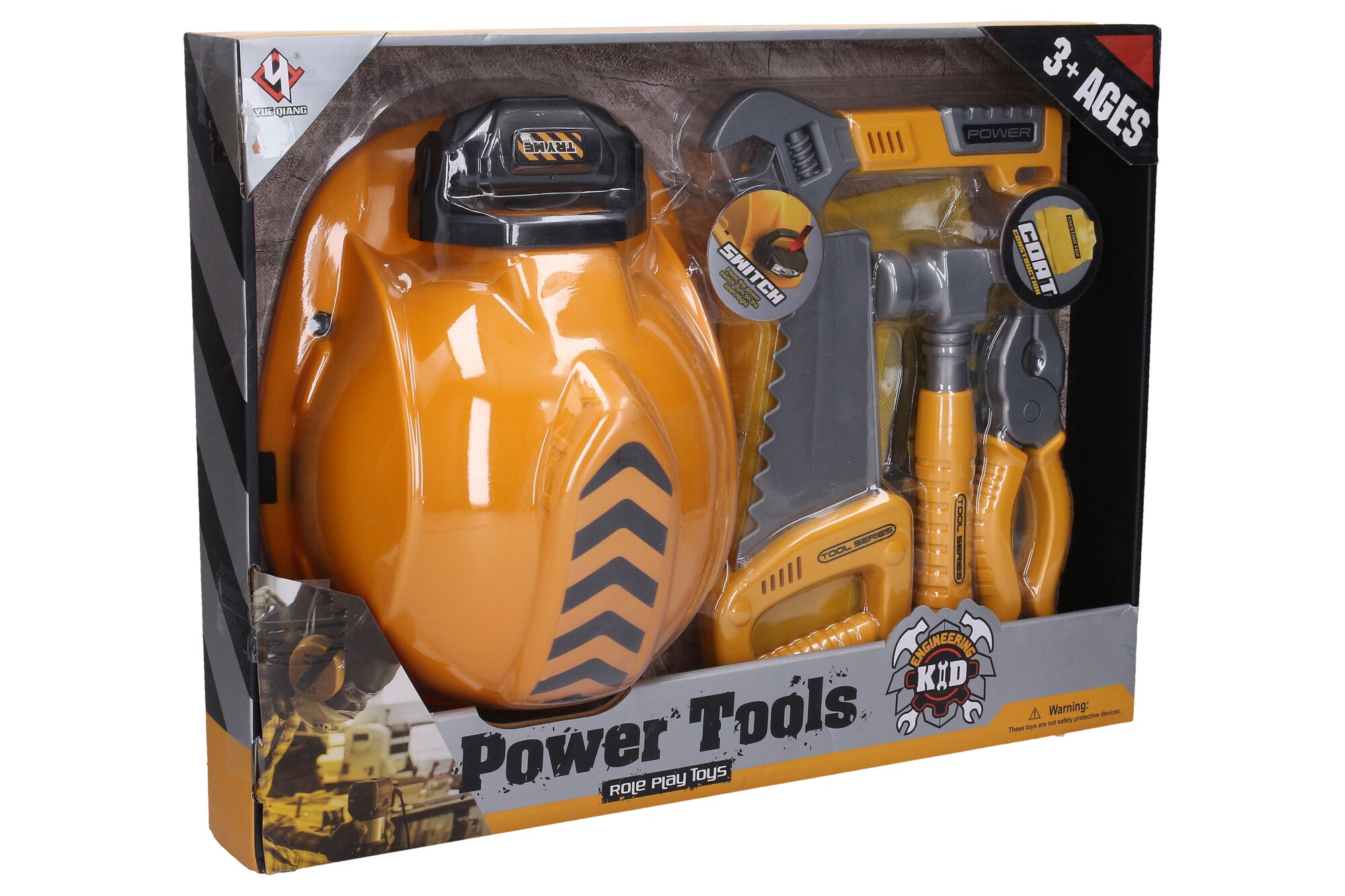 Nářadí s helmou a svítilnou. Rozměry helmy 24x19x13 cm. 3xAG13 baterie do svítilny součástí. Aktivace tlačítkem na svítilně. Polohovací sklon svítilny. Součástí elastický popruh na suchý zip. Obsah balení - helma se svítilnou, vesta, pilka, hasák, kladívko, kombinačky. prečítať celé