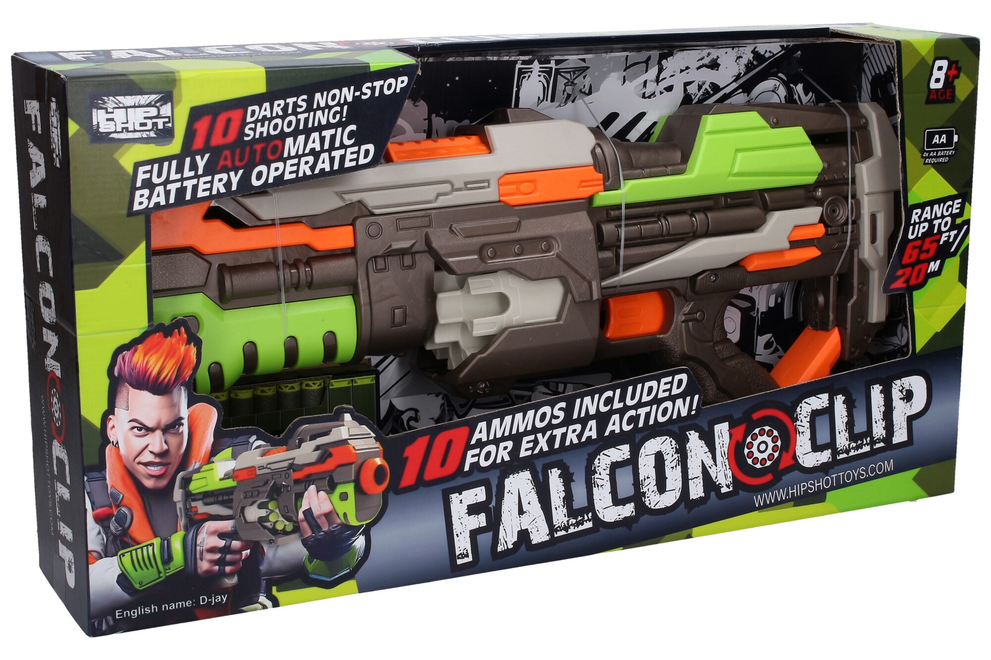Puška s 10 pěnovými náboji. Rozměry 45x8,5x22 cm. 4xAA baterie součástí. Přepínač ON/OFF nad rukojetí. Dostřel 20 m. Obrázkový návod s popisem na zadní části obalu. prečítať celé