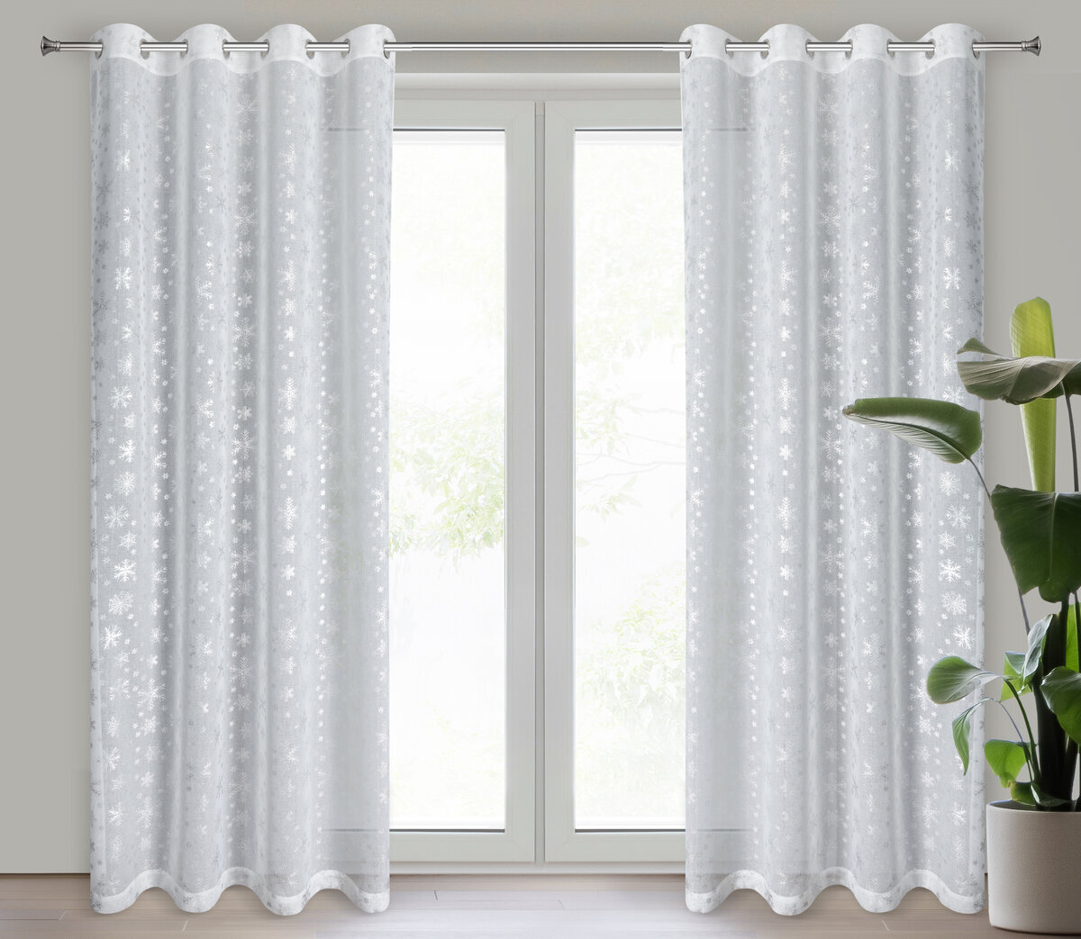 Kvalitní vánoční hotová dekorační záclona v trendovém provedení do obývacího pokoje v rozměru 140x250 cm. 1 kus v balení. Je potištěna stříbrnými vločkami. ZÁCLONA MÁ REŽNÝ VZHLED.Rozměr : 1x 140x250 cm - šířka 140 cm, výška 250 cm prečítať celé