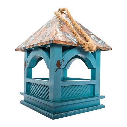 krmítko pro venkovní ptactvo v designu altánku k postavení nebo zavěšení, kvalitní provedení povětrnostním podmínkám odolná střecha  materiál: červené cedrové dřevo, kov rozměry: 20 x 20 x 30 cm barva:  tyrkysová prečítať celé
