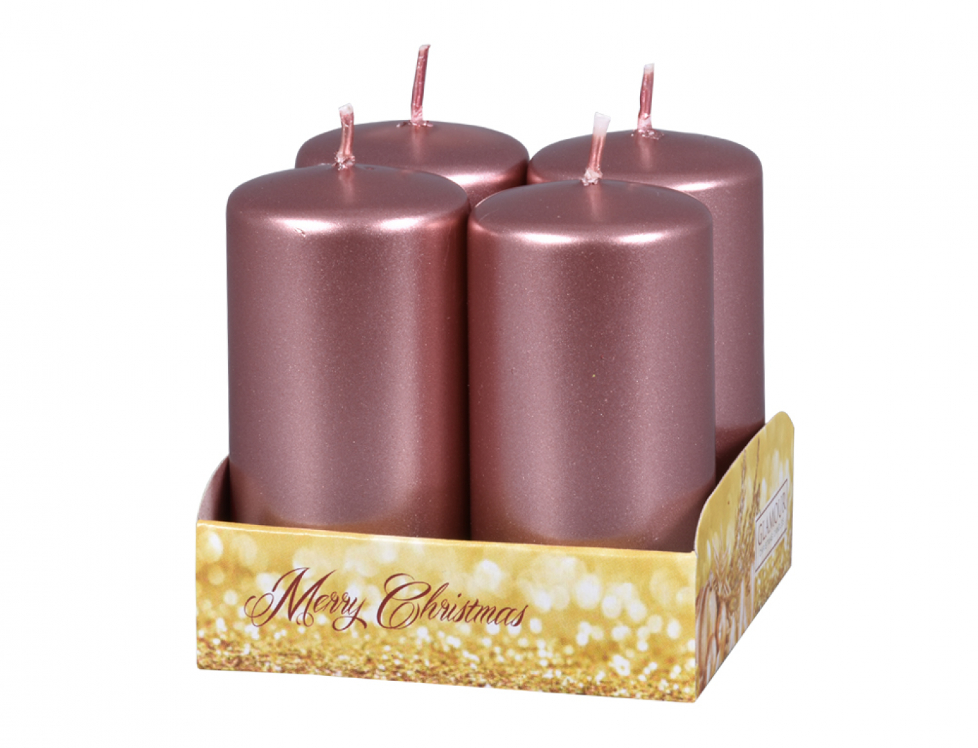 Adventní svíčky s rovnou hlavou v lesklém a hladkém metalickém provedení. Adventním věncům dodají jiskru. Doba hoření: 14 hodin. Rozměry: průměr 4 cm, výška 8cm. V balení jsou 4 ks svíček. Barva: růžovo-zlatá. prečítať celé