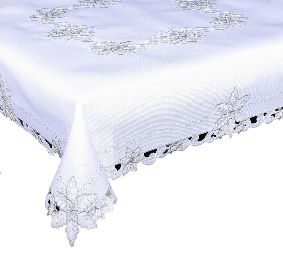 Ubrus vánoční, Vánoční hvězda stříbrná 18, bílá pr. 35 cm