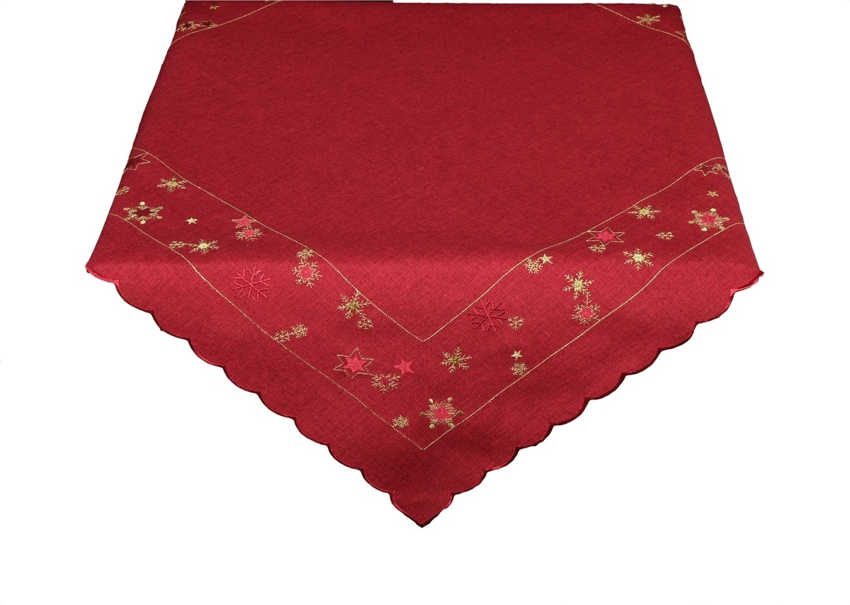 Ubrus Vánoční, Zlaté vločky a červené hvězdičky, červený pr. 35 cm