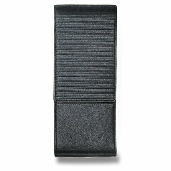 Pouzdro z měkké černé nappa kůže s vyraženými proužky na zavírací klopě, pro 3 pera. prečítať celé