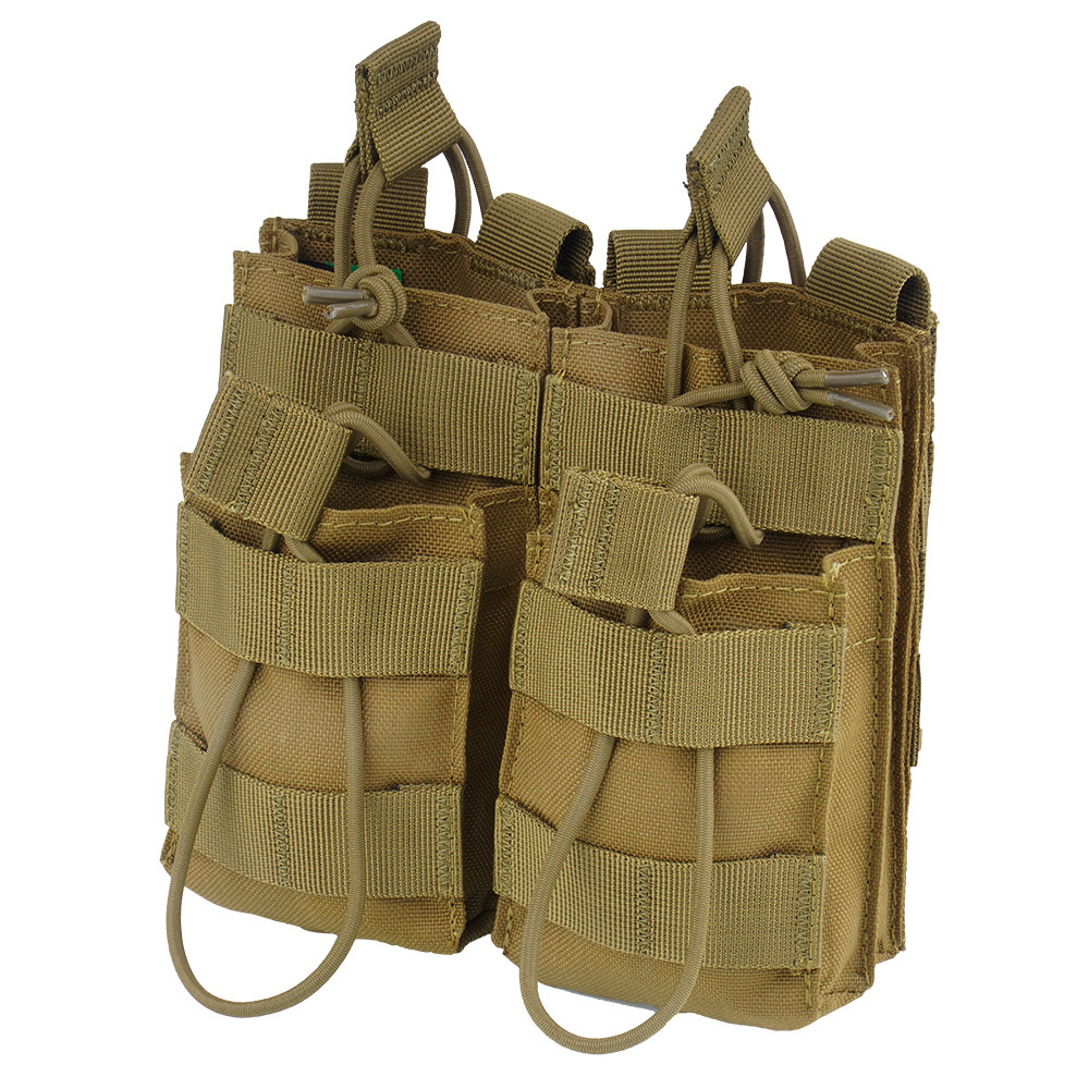 Podwójna ładownica na cztery magazynki AR15. Wykonana z poliestru o gęstości 1000D. Kieszenie otwarte typu CQB zabezpieczone elastycznym, regulowanym trokiem, posiadającym specjalny uchwyt umożliwiający obsługę w rękawicach. Mocowana do panelu czterema pionowym paskami MOLLE. Na przedzie posiada poziome pasy umożliwiające dopięcie dodatkowych ładownic.