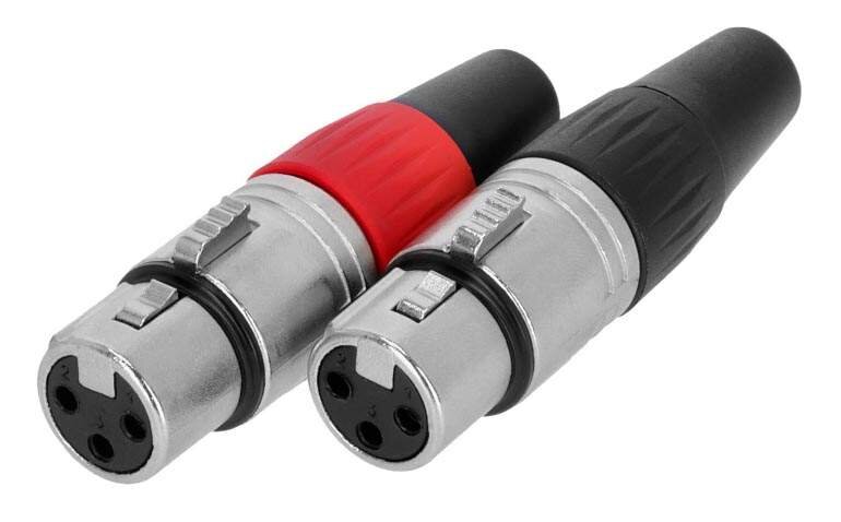 Pár XLR kabelových zásuvek (samic) 3STAR Adam Hall. Jedna červená a jedna černá. Cena za pár. prečítať celé
