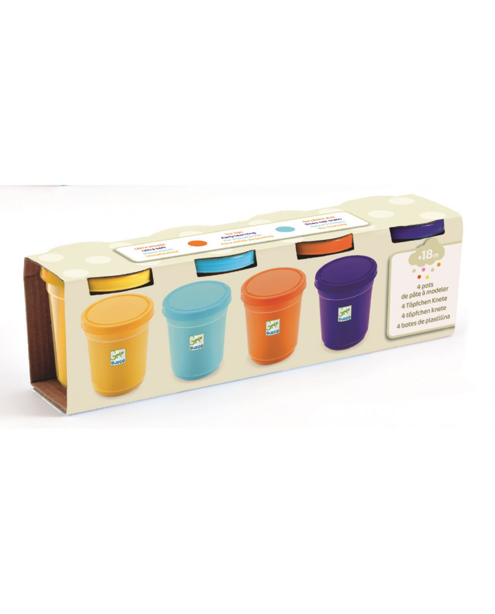 Farebná modelína DJECO je ideálnym spoločníkom pre malých umelcov už od 18 mesiacov. Balenie obsahuje štyri kelímky s prírodnými farbami, z ktorých každý obsahuje 140 g modelíny. Jej ľahká a mäkká konzistencia umožňuje jednoduché tvarovanie aj tým najmenším deťom, pričom materiál je netoxický a úplne bezpečný.