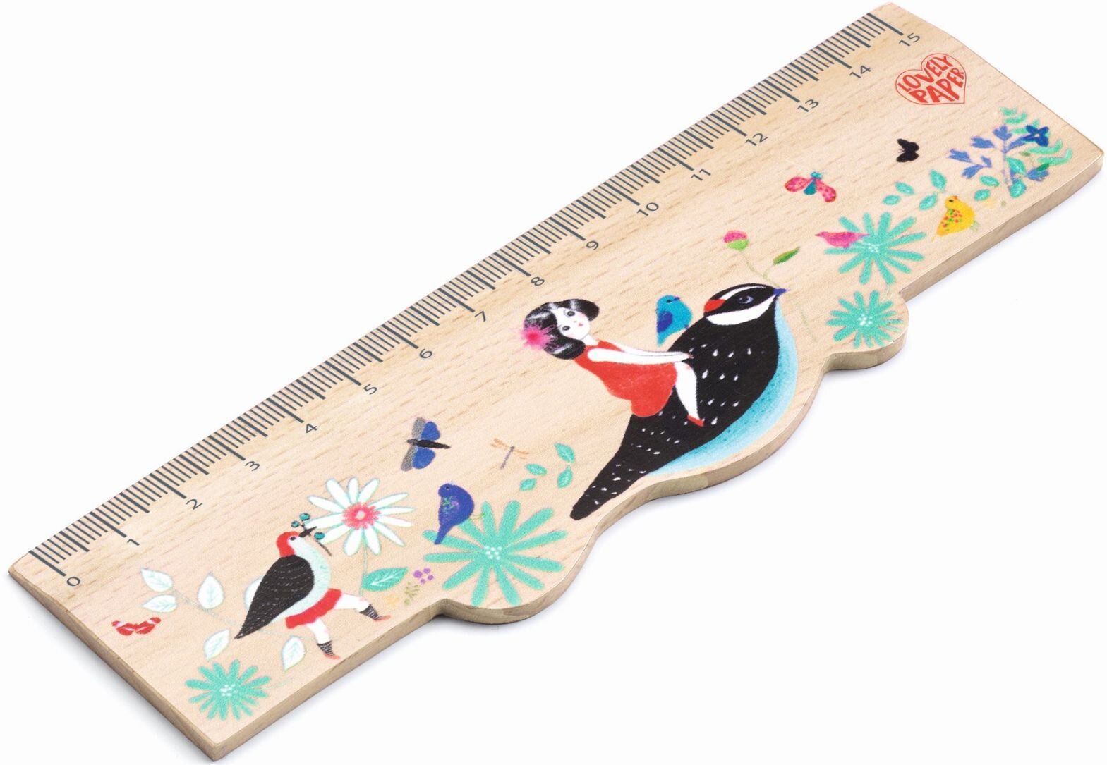 Dřevěné pravítko o velikosti 16 x 5 x 0,3 cm s krásnými ilustracemi francouzských návrhářů bude ozdobou každé školní tašky. prečítať celé