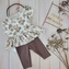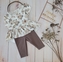 Bavlněná sada, 2D, tunika + legíny s květy - čokoládová/ecru, vel. 74; 74 (6-9m)