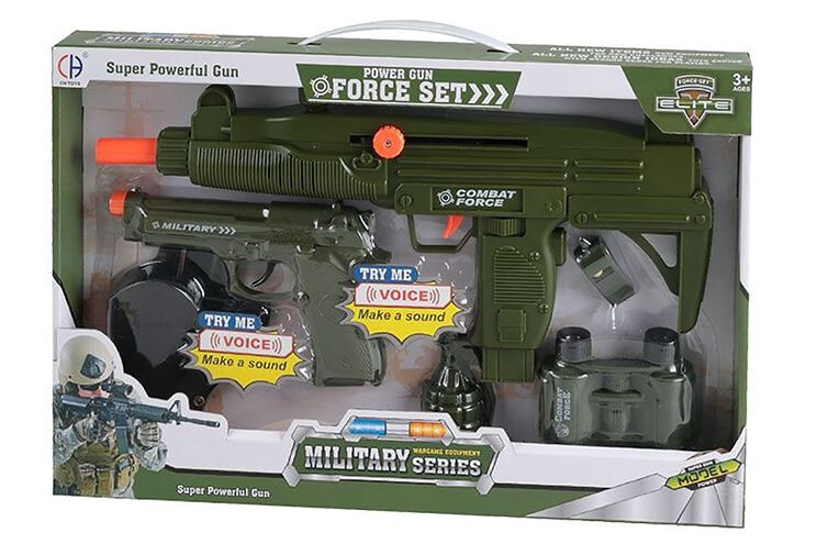 Funkcje: Karabinek: po naciągnięciu przegrody pocisku i naciśnięciu spustu słychać dźwięk imitujący wystrzały z broni automatycznej Pistolet: po naciśnięciu spustu słychać dźwięk imitujący wystrzał prečítať celé