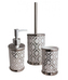 Rozměry : kalíšek na zubní kartáček 7x11 cm, dávkovač na mýdlo 7x18 cm, toaletní štětka 11x39 cm