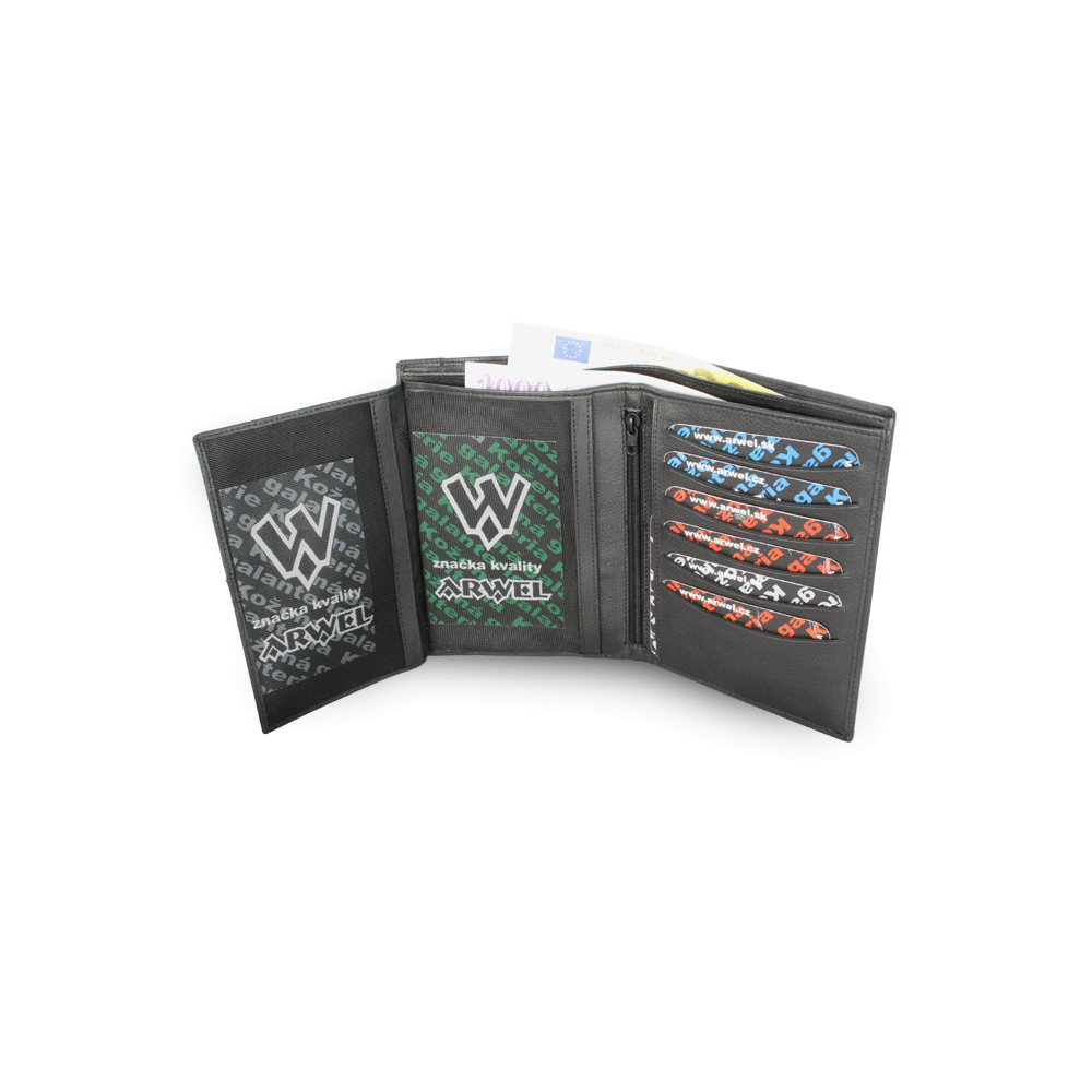 Kožená pánská dokladovka od české značky Arwel.Vlastnosti:• s přihrádkou na bankovky• 10 kapes na kreditní karty• 3 průhledné kapsy• 4 vnitřní kapsy• 1 zipová kapsa• vhodné pro cestovní pasMateriál: pravá hovězí kůže (PDM) prečítať celé