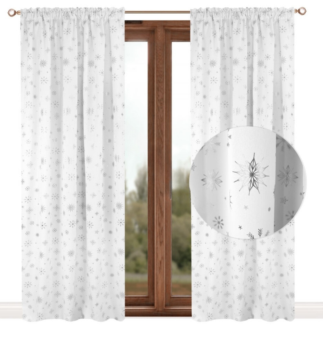 Vánoční dekorační závěs s řasící páskou XMAS TIME II. bílá stříbrné vločky 145x250 cm (cena za 1 kus) MyBestHome