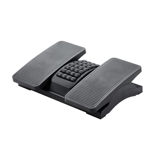 Navyše sú uprostred podnožky umiestnené masážne valčeky, ktoré príjemne stimulujú chodidlá a prispievajú k zmierneniu únavy a bolesti. Celý výrobok je v elegantnej čiernej farbe a kompaktných rozmeroch 43 x 32 x 10,5 cm, takže sa zmestí pod každý pracovný stôl.