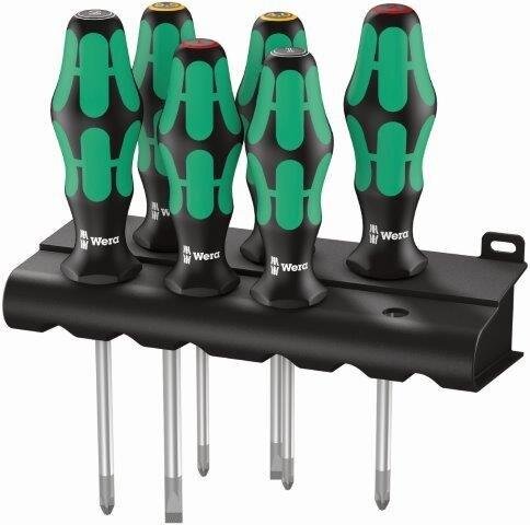 WERA - šroubováky tříkomponentní - sada, zelenočerné (6 ks), Lasertip Rack