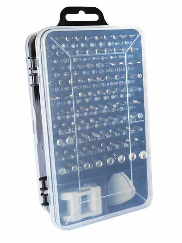 Sada obsahuje 17 druhov rôznych nástrojov a 98 bitov a nadstavcov, ktoré sú vhodné práve pre jemnú prácu s mikroelektronikou. Vďaka praktickému plastovému boxu je navyše skladovanie aj prenos jednoduchý a pohodlný. Materiál CRV zaručuje dlhú životnosť a odolnosť proti opotrebeniu.