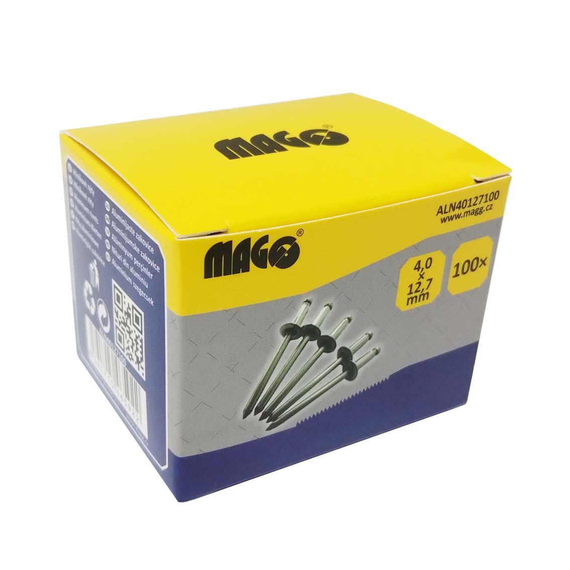 Technické specifikace:• Materiál: - Hlava a tělo nýtu: slitina hliníku s hořčíkem (5050) - Trn nýtu: ocel• Rozměry: - Průměr d1: 4,0 mm - Průměr d2: 7,8 mm - Délka L: 12,7 mmObsah balení:• 100 ks nýtůK předvrtání použijte vždy vrták o 0,1 mm větším průměru, než je průměr nýtu.
