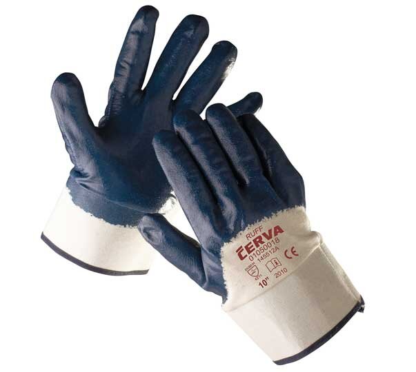 CERVA - RUFF rukavice z bavlněného úpletu nitrilovou dlaní a tuhou manžetou - velikost 10
