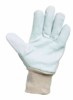 PELICAN PLUS - rukavice pracovní šité z jemné lícové kozinky v dlani, bílé bavlněné tkaniny na hřbetu a s nápletem velikost 8 prečítať celé