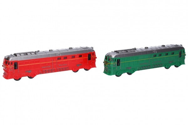 Lokomotiva/Vlak plast 23cm na setrvačník na baterie se zvukem se světlem 2 barvy 12ks v boxu