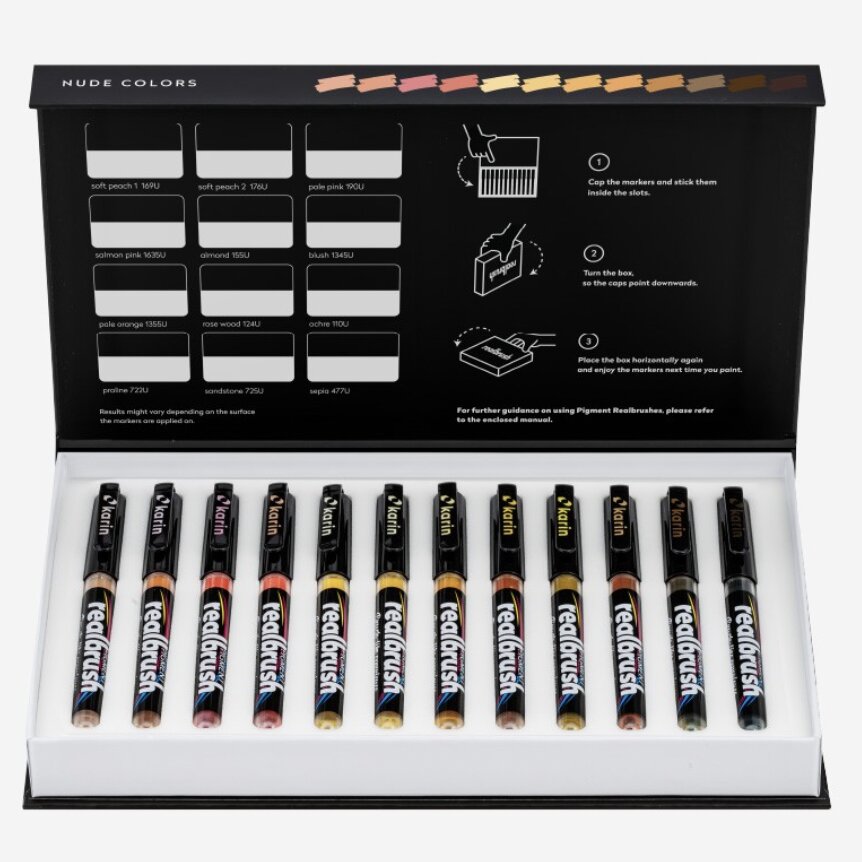 Objevte umělecký svět s Karin REAL BRUSH PIGMENT s 12 pigmentovnaými barvami! Tento set nabízí 12 barev v tělových odstínech s vysoce koncentrovanými pigmenty a flexibilními štětečkovými hroty, ideální pro profesionální i amatérské umělce. Vytvářejte detailní kresby, jemné přechody a syté barvy s tímto kvalitním nástrojem.