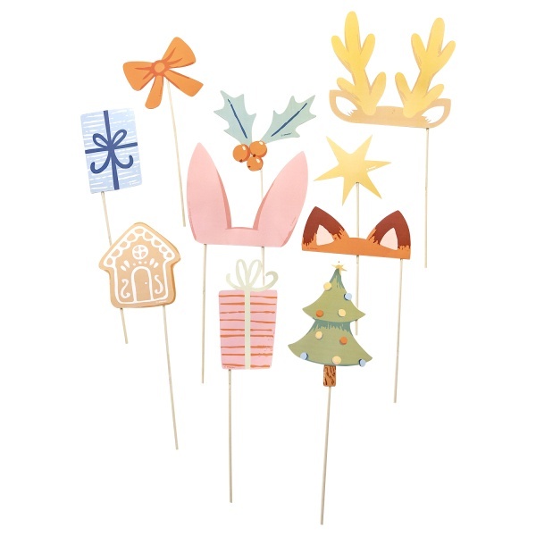 Rekvizity do fotokoutku na vánoční party, dětskou besídku v tématu nebo firemní večírek. Papírové rekvizity lze využít například do fotokoutku jako doplněk při focení nebo když rekvizitu zapíchnete do vázy, poslouží jen jako dekorace na vaší party.  Balení: 10 ks. prečítať celé