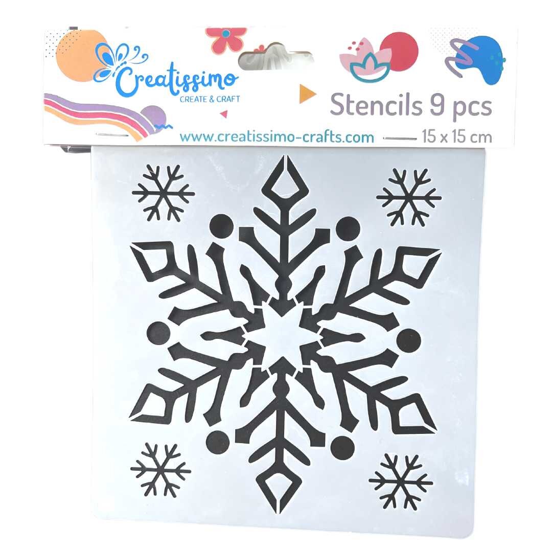 Creatissimo - plastová šablona Sněhové vločky set 9 ks 15x15 cm