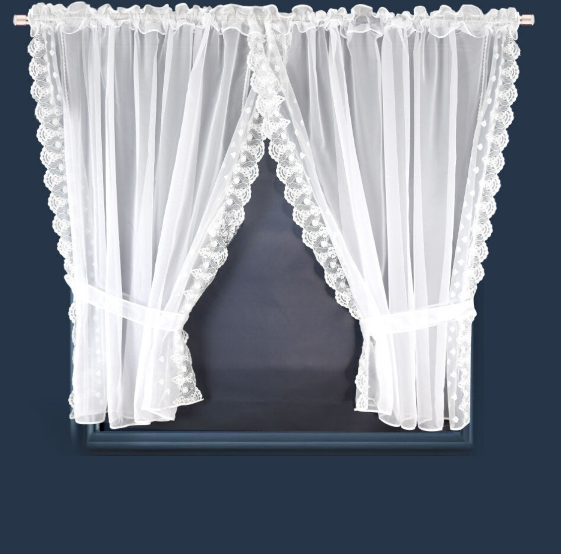 Součástí balení jsou voálové stuhy k upevnění záclony na bocích.