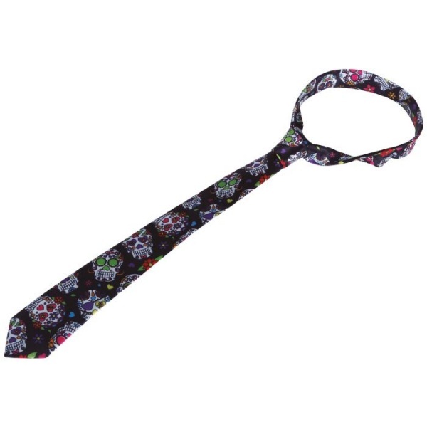 Kravata - Day of the dead. Vázací kravata v motivu Dia de los Muertos, se kterou si užijete focení jak vy tak i vaši přátelé. Skvělá rekvizita do fotokoutku, hodí se ale i jako doplněk ke kostýmu na Halloweenskou party nebo jen jako vtipné doplnění outfitu na party.