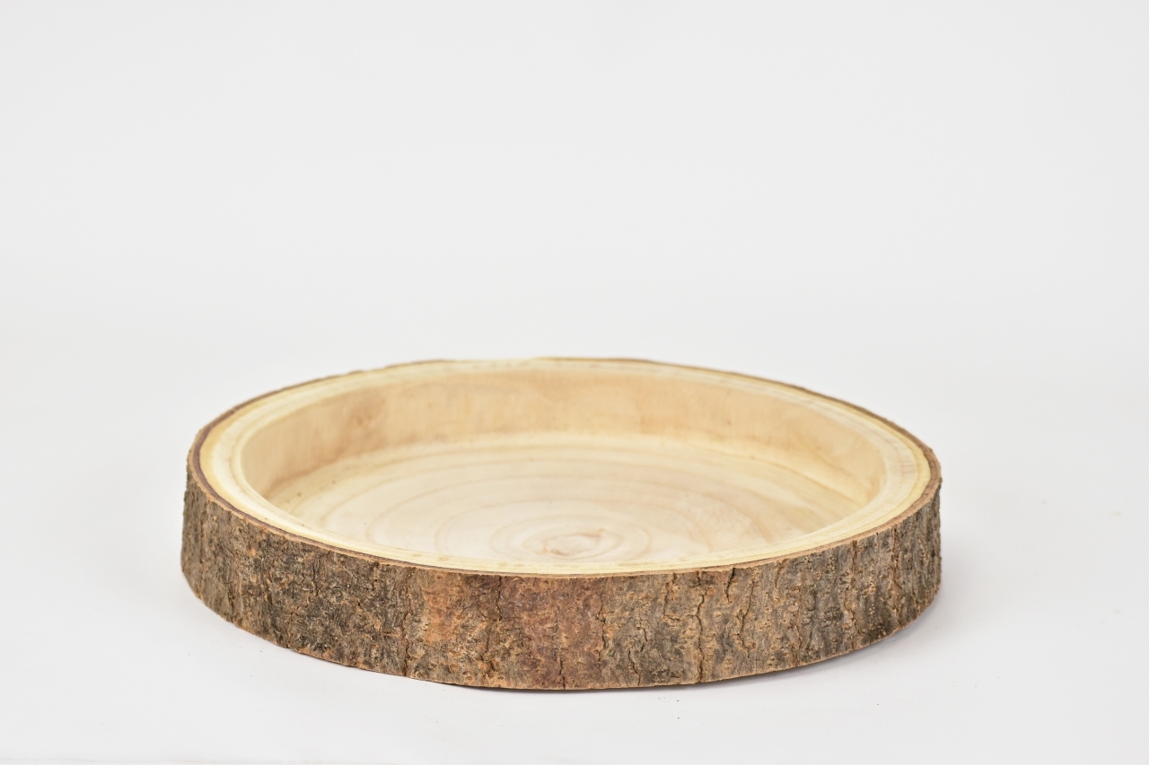 Dřevěný tác s kůrou po obvodu. Kůra nemusí být po celém obvodu.Materiál: dřevo paulownieRozměry:výška 4 cmprůměr 28 cm prečítať celé