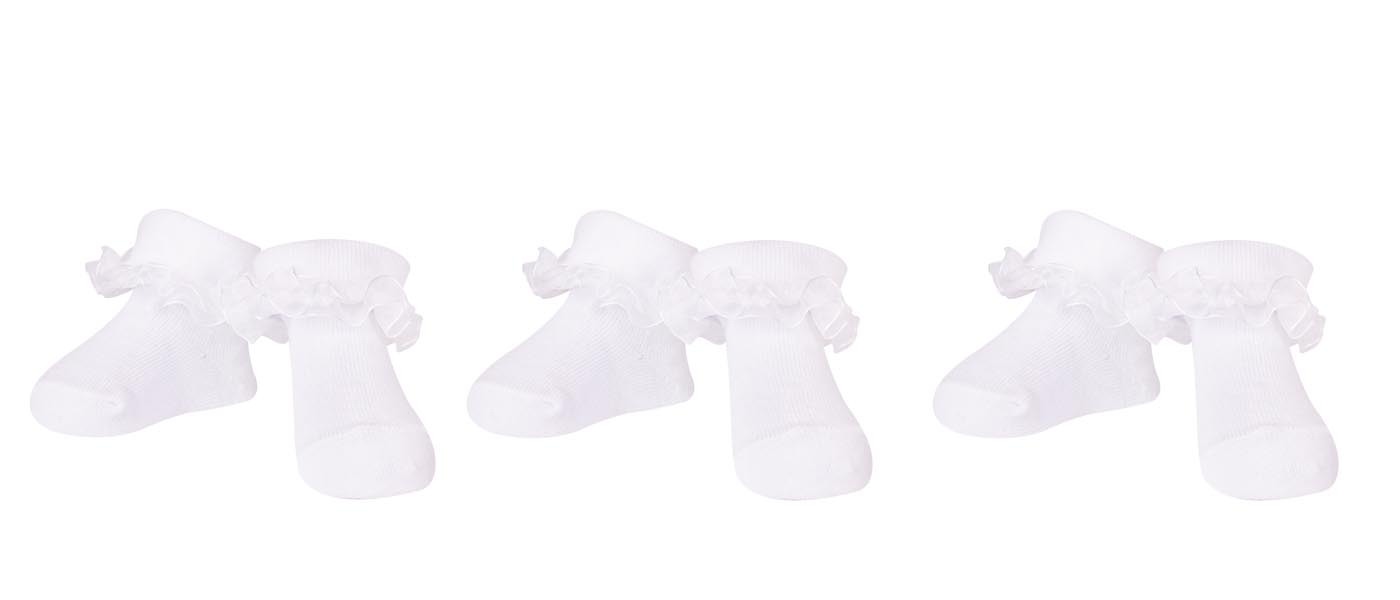 SCORPIO SKA-0119 Skarpety niemowlęce z falbanką na bucik białe 0-3 m