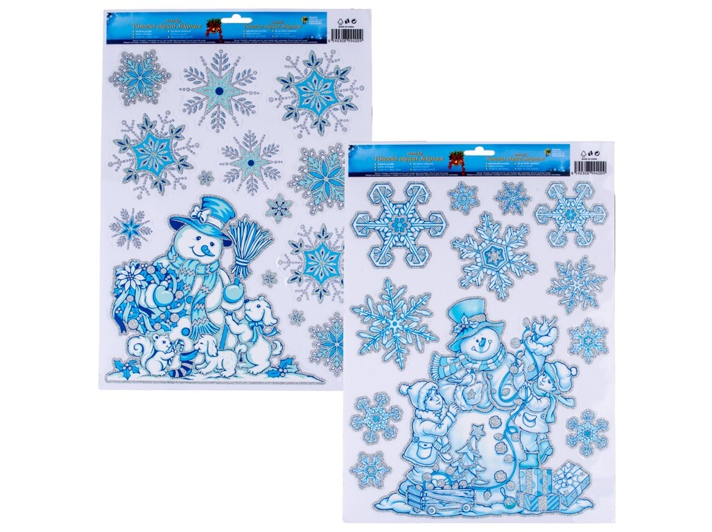 Okenní folie adheziv 290x410 mm Vločky a sněhulák mix, modrostříbrná