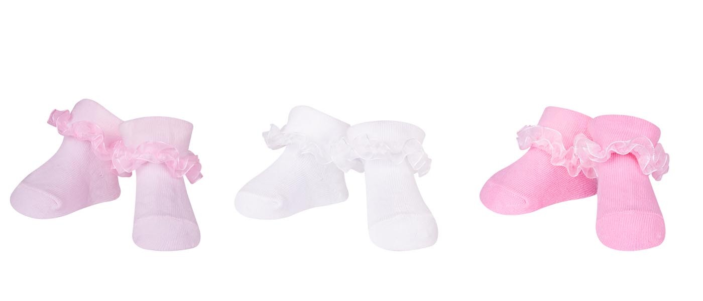 SCORPIO SKA-0119 Skarpety niemowlęce z falbanką na bucik mix 0-3 m