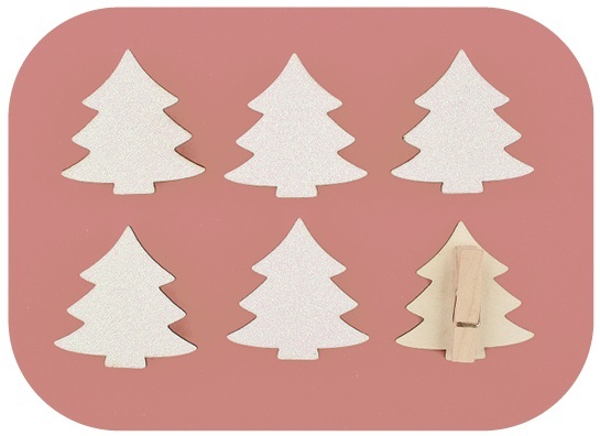 Dřevěné stromečky na kolíčkuStromečky můžete použít ke zdobení věnců či vazeb, přáníček, dárků nebo třeba fotek.Bílé stromečky jsou posypané glitry, takže se na dárcích pod stromečkem budou krásně lesknout!6 kusů v balení. prečítať celé