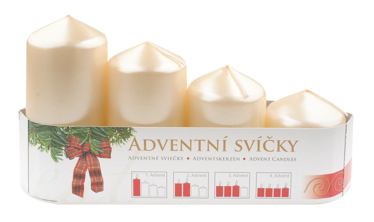Adventní svíce válec krémová LAK, postupka 60, 75, 90, 105 x 50 mm, 4 ks