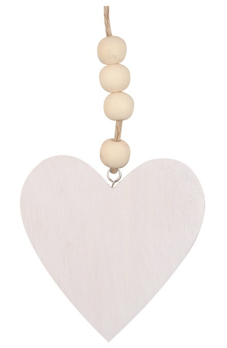 Dřevěné srdce s korálky na zavěšení bílé 12 cm